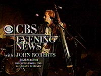 CBS News aired a story on MPEG3 music and the Internet featuring an interview with me, this website and a live performance of "Birthday Song" (Real Video 28.8; 56). The story originally aired on Sunday evening, 22 November 1998, then repeated in continous feeds overnight, the next day on the CBS Morning show, and even in Great Britain thru SKY 1.