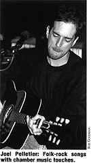 "Compared to the more plaintive singer/songwriters working L.A.'s coffehouse circuit, Joel Pelletier possesses the appealing, humorous edge of a country tunesmith. Not that his music has a country and western sound, but rather his song craft relies simply on rustic, biting lyrics and bittersweet musings, much the same way country appeals with its rough-hewn sensibility.