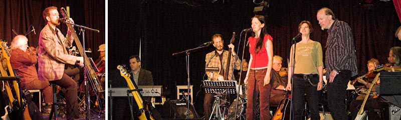 Summerr 2008 has been and/or promises to be exciting and busy for me musically. In late May I did my first "Chamber Pop" performance since doing some gigs in London, UK in 2003. I was asked by AU in Los Angeles to perform a set of songs that I called FREETHINKING MUSIC. I performed with some great old (and a few new) musician friends, a full band including myself on bass and vocals, Tom Coyne on drums, Dave Hill and Chuck Crowe on guitars, Dan Scoville on piano, a string quartet with Michael Harrington, Kristin Autry, Nika Stein and Jimbo Ross, and AU member Virginia Moore on euphonium and flute! Also joining the band were guests vocalists Kari Kracht and Tara Sitser. Having this size ensemble allowed me to perform some humanist music that influenced my Chamber Pop style in their original arrangements, including Bacharach's WHAT THE WORLD NEEDS NOW, Elton John's YOUR SONG and John Lennon's IMAGINE. My attempt at recording the performance met with some tech glitches, but I did get audio off the board, and there was a video camera there to record it, so as soon as I get the DVD I will post music and video! Suffice to say, it went very well, was very well received, and I have been invited to repeat the program at the year-end AAI Conference at the Queen Mary in Long Beach, CA in September 2008. Download the program with credits, a song list and comments here.
