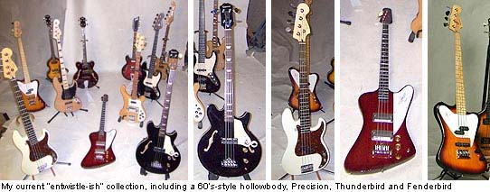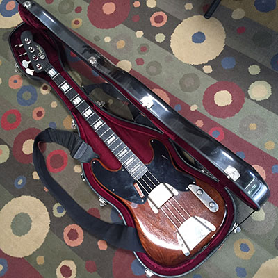 • A Thunderbird bass (he bought the last 10 from Manny's Music in 1971 or so when he found out they stopped making them). Mine started as an Epiphone Thunderbird bass, but the only orignal part left is the body (which STILL needs to be refinished someday for the original brown instead of reddish color)