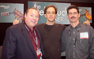 (left) Mark & Rusty (Intellitouch) with Joel (two of my biggest fans!); (right) Larry & Joel (ADK Microphones)