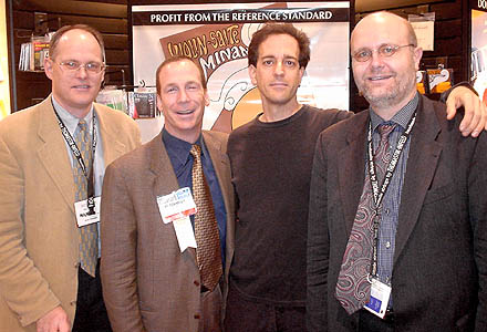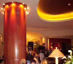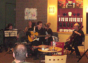 Proving once again that there is still some "music" left in the "music business," I played a few times at the 2004 Winter NAMM Convention in Anaheim, CA. My main performance at the Starbucks in the Anaheim Marriot on 15 January, sponsored by Yamaha, Thomastik-Infeld and Intellitouch, was with a string quartet (Marci Vaj & Kristen Autry, violins; Daryl Silberman, viola; Vahe Hayrikyan, cello) performing on Yamaha "Silent String" instruments (potentially a great way to tour with a string section and a full band). Larry from ADK Microphones provided one of his great Area 51 tube mics, the same vocal mic I own and record with.