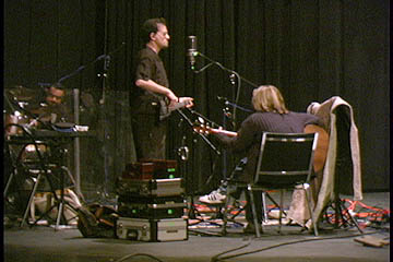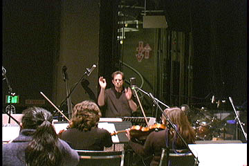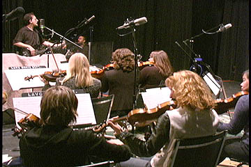 A demo recording session for my next pop album/project/CD/DVD/whatever, tentatively entitled "Chamber Pop: (Real) Time," was done in 2002. My band (Brian Patridge and Kate Lewis), engineer Brian Soucy, and 11 local pro string players donated an afternoon to help test the 5.1 recording gear I have been accumulating over the last two years. Above are stereo MP3 versions of the 4 songs - below is a video of the shortest of the 4, Minute Song, from footage shot by Jeff Daly (thanks VERY much, Jeff). I am working on DVD authoring to produce a DVD demo with all 4 live takes, including 5.1 AND stereo 24/48 audio tracks (switchable with the DVD remote).